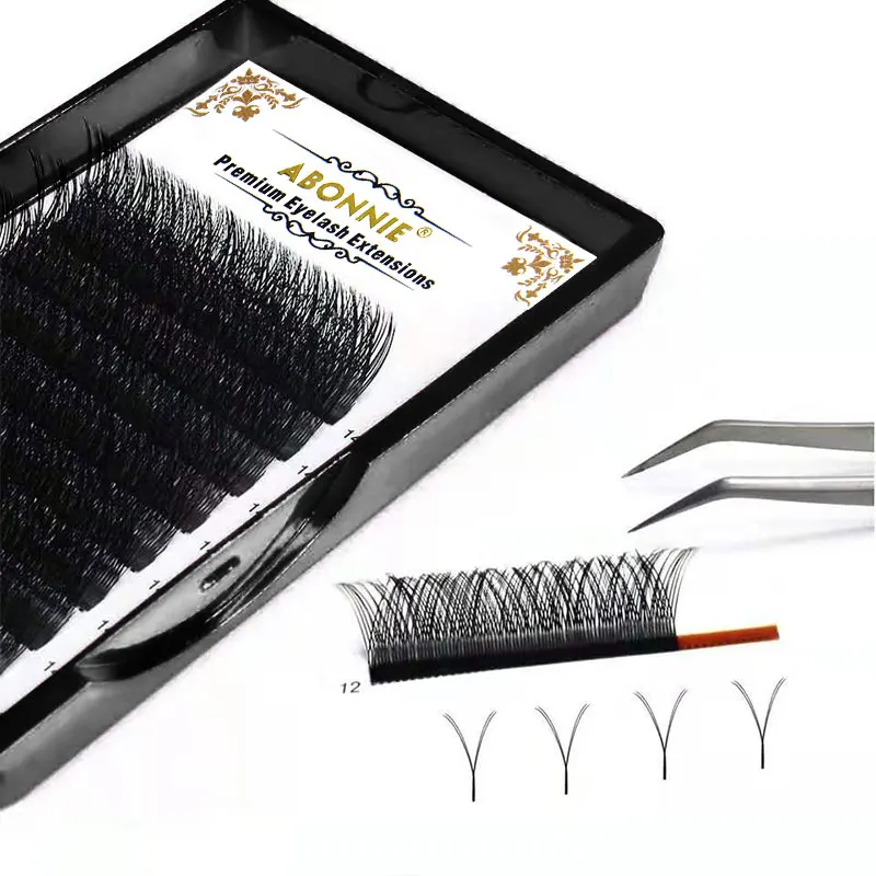 Abonnie pre made fans 10D eyelash extension short stem Heat Bonded premade fans Russia Volume Makeup Tools Faux MInk