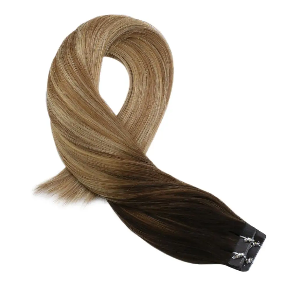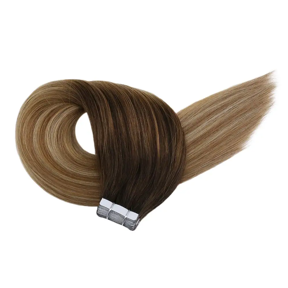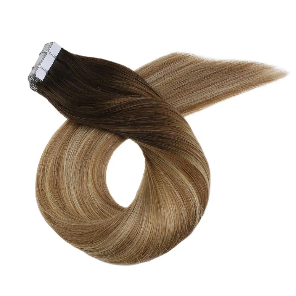 Moresoo Tape in Human Hair Extensions Balayage Ombre Color 12-24 inch 30-100g/pack Machine Remy Skin Weft Hair Extensions