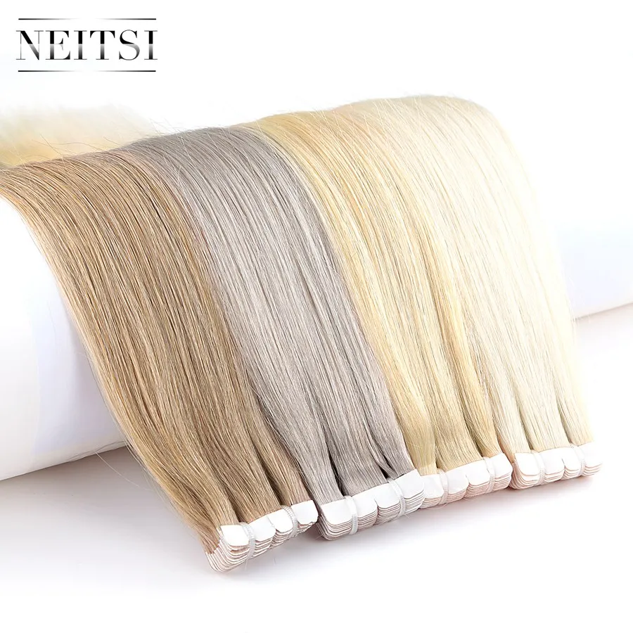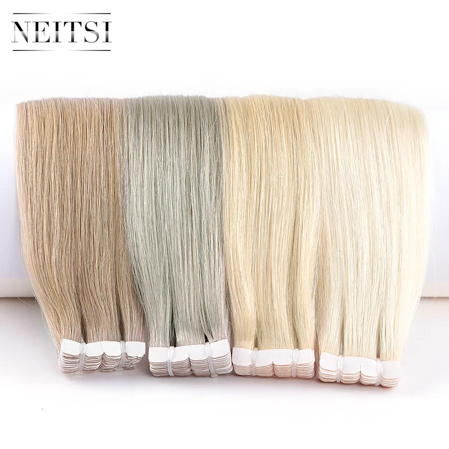 Neitsi 10PCS Remy Tape In Human Hair Extensions Double Drawn Adhesive Straight Hair Skin Weft 16" 20" 24" Multi Colors