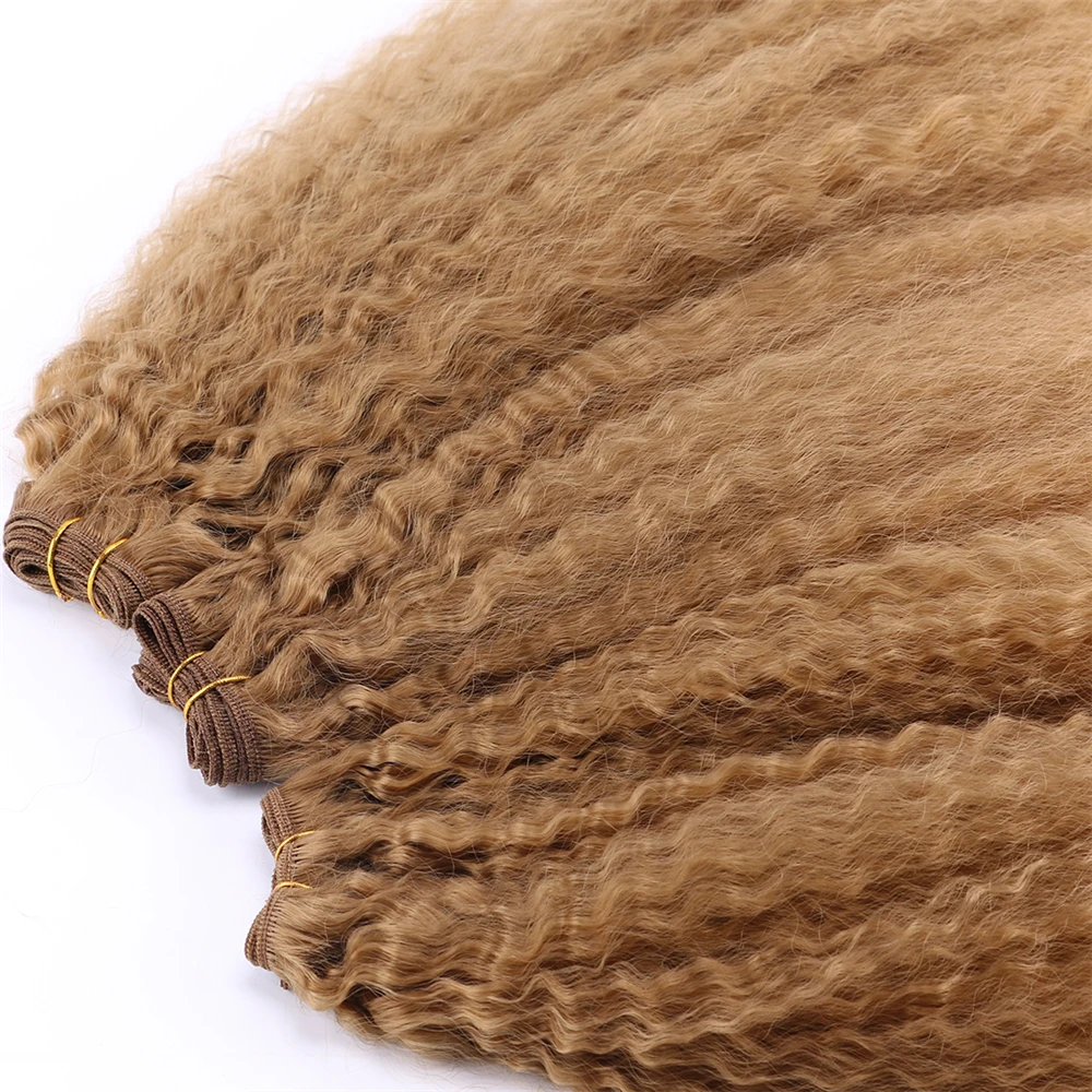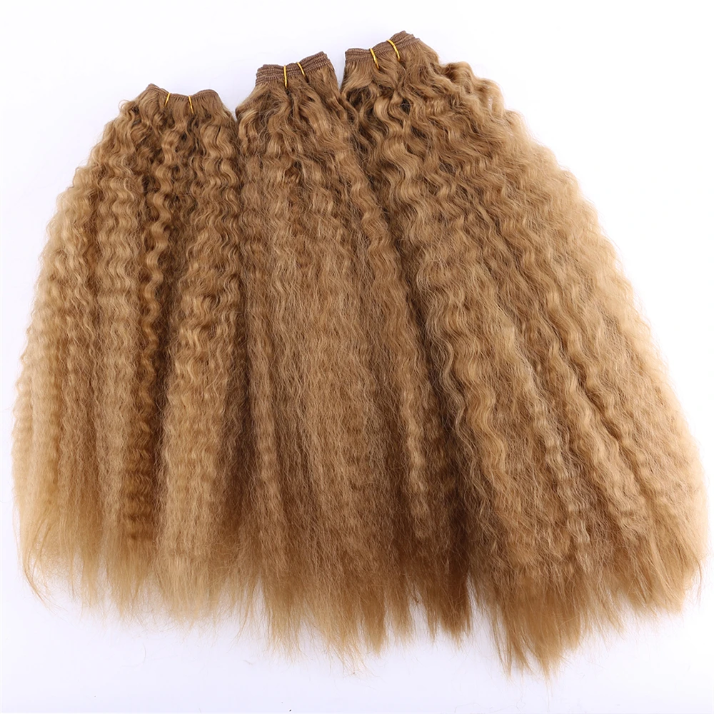 Golden color afro kinky curly synthetic hair extension 100g/pcs high temperature hair bundles
