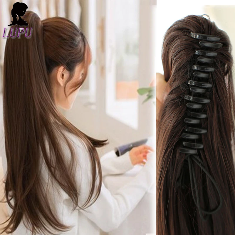 LUPU WIG Synthetic Long Curly Claw Ponytail Clip in Hairpiece Black Blonde Pony Tail Heat Resistant Hair Extension For Women