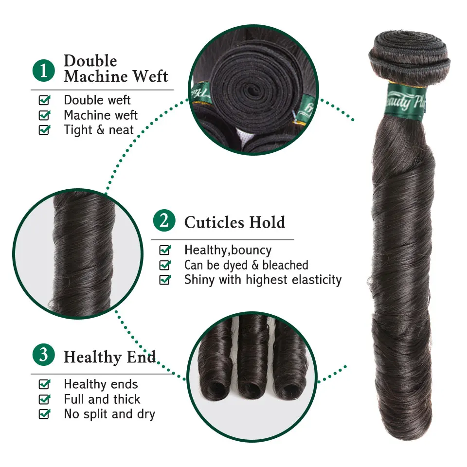 French Curly 2 Bundles With Closure Beauty Plus Nonremy Hair Romantic Egg Curl Brazilian Human Hair Weave Bundles With Closure