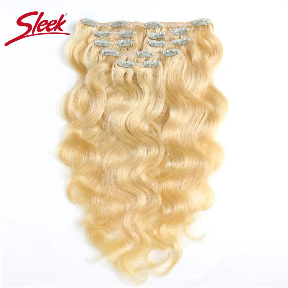 Related Product for Sleek Colorful Hair 7Pcs Clip In Human Hair Extensions Brazilian Body Wave Bonde 613 Color Hair Ful