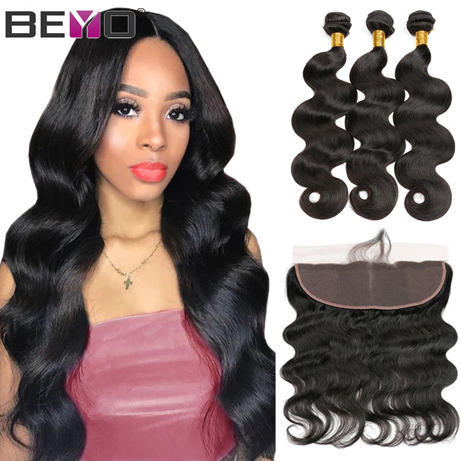 Beyo Body Wave Bundles With Frontal Peruvian Hair Bundles With Closure Human Hair Bundles With Lace Frontal Closure NonRemy Hair