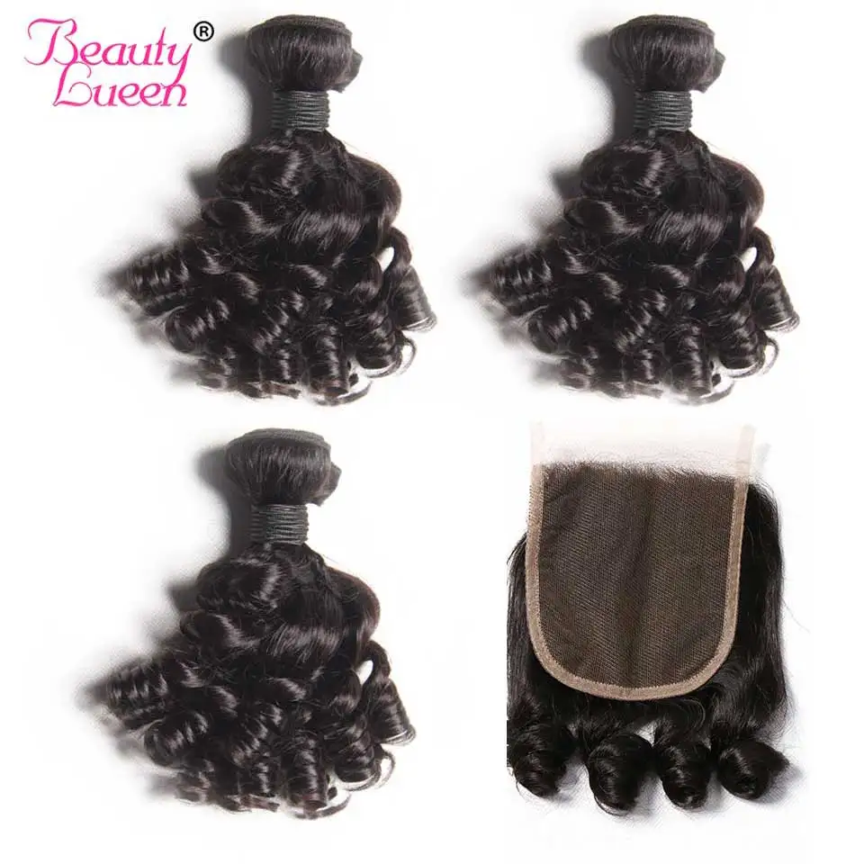 Beauty Lueen Bouncy Curly Human Hair Bundles 3 4 Bundles Funmi Peruvian Hair Weave Bundles Short Bob Remy Human Hair Extensions