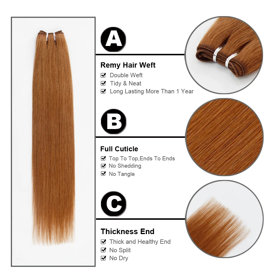 Related Product for FOREVER HAIR 100g/pc Remy Human Hair Weft Dark Brown European Straight Hair Extension Strawberry Bl