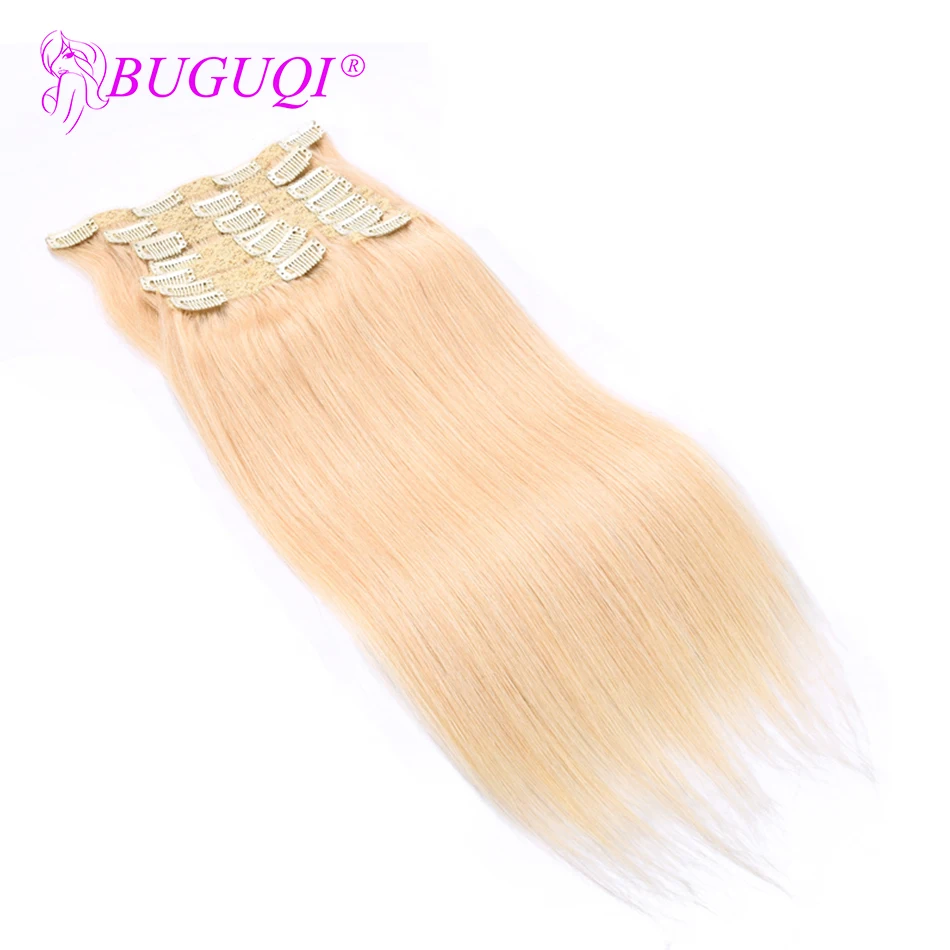 BUGUQI Hair Clip In Human Hair Extensions Peruvian #24 Remy 16- 26 Inch 100g Machine Made Clip Human Hair Extensions
