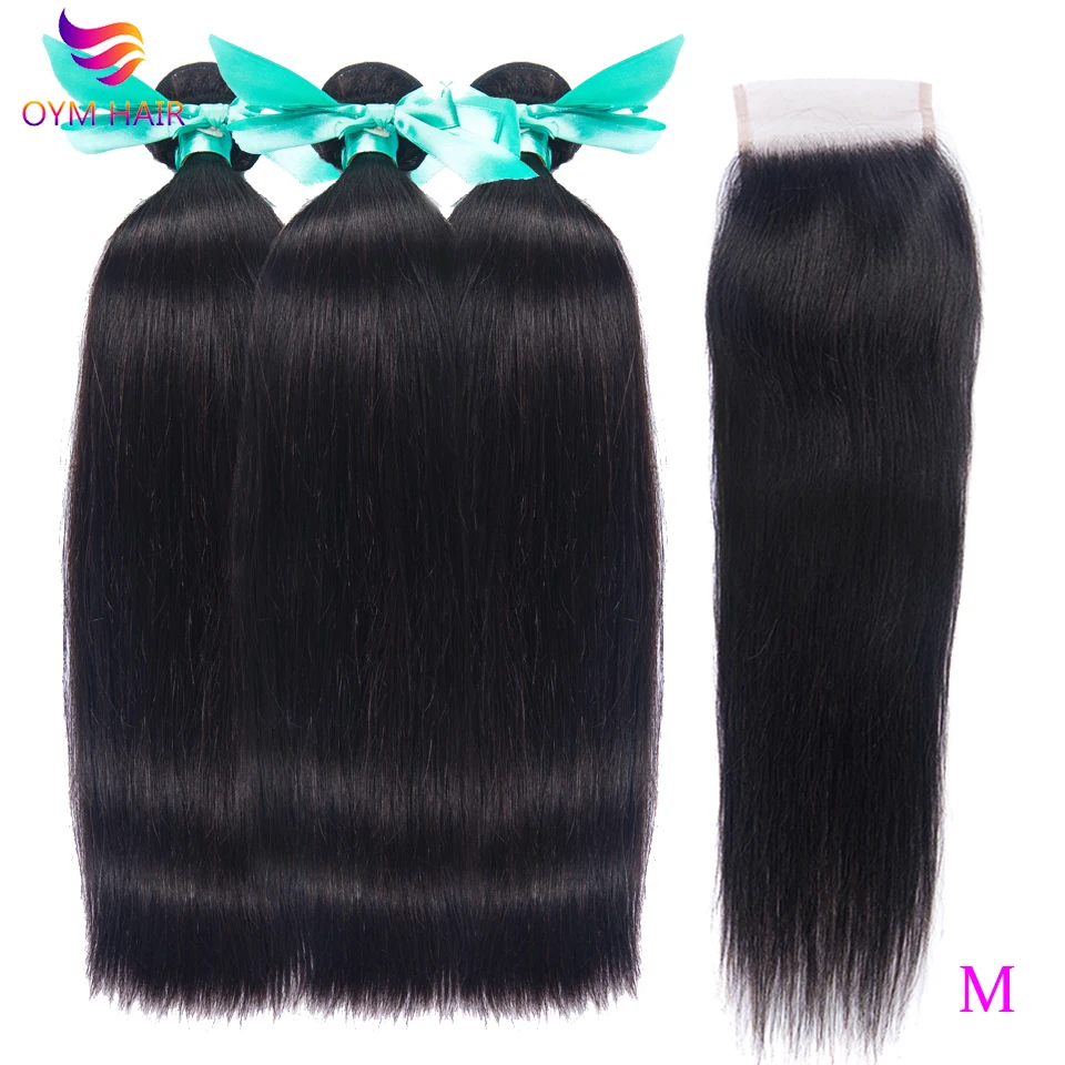 OYM HAIR Human Hair Bundles With Closure Brazilian Straight Hair Bundles With Closure Remy Hair 3 Bundles With Closure