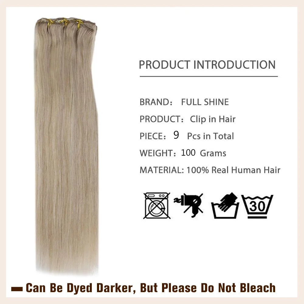 Full Shine Seamless Clip in Human Hair Extensions 8Pcs 100g Blond Hair Pu Clip on Extension Pure Color Skin Weft Machine Remy